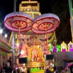 Hampi-inspired design using white stone from Gangavati reaches 70% completion. 10 sculptors work toward a five-month finish creating a village pilgrimage center.
