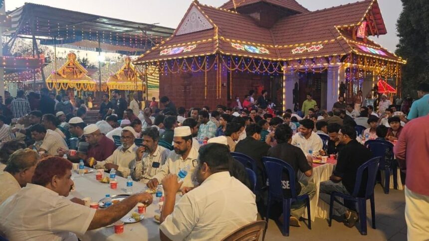 Shree Poobanam Kuzhi Temple at Thachangad hosted a community Iftar for Muslim residents in its courtyard during the Brahmakalashotsavam reconsecration festival, accommodating Ramadan fasting, preventing annadanam participation.