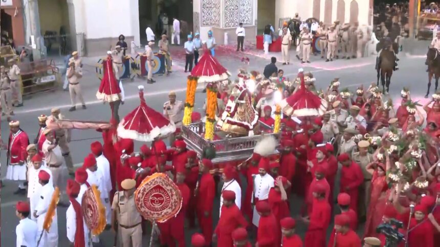 The procession featured decorated elephants, chariots, and palanquins, with women in bridal ghagra-cholis carrying ghudlias. The route passed Tripolia Bazaar, Chhoti Chaupar, and Gangauri Bazaar amid shehnai music.