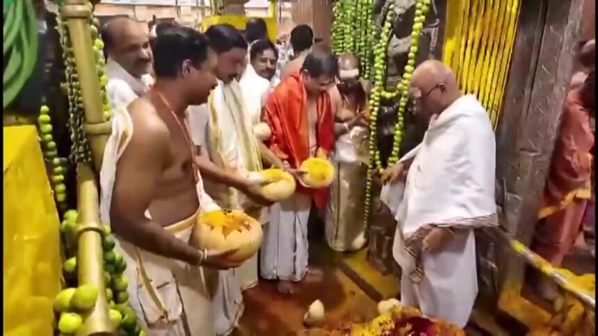 Annual Kumbhotsavam unfolded today, April 7, at Sri Bhramaramba Mallikarjuna Swamy Temple in Srisailam, Andhra Pradesh. Special morning pujas included Ashtottara Shatanama Kumkuma Archana performed in Ekantham.