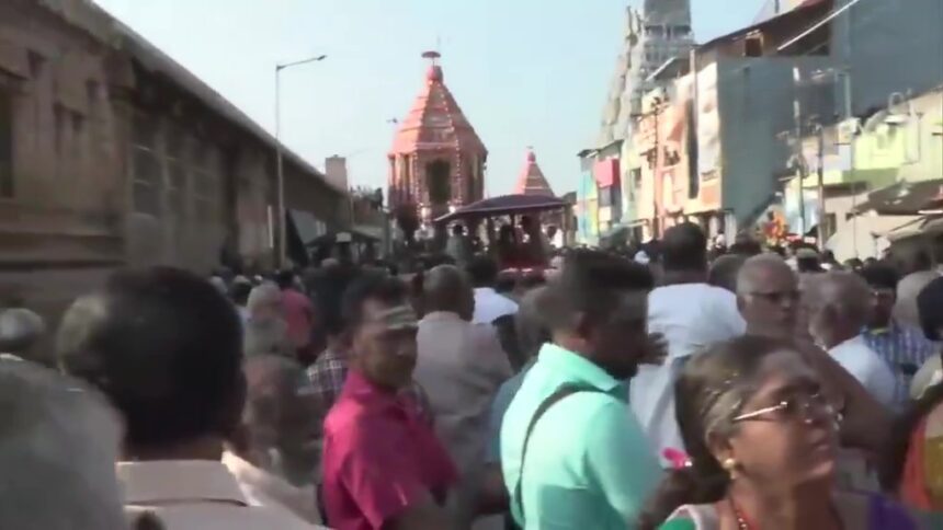 Jambukeswarar Temple’s grand chariot procession marked the climax of the Panguni Brahmotsavam, with thousands pulling massive rathams for Lord Shiva and Akilandeswari.