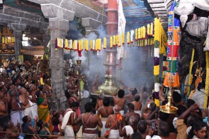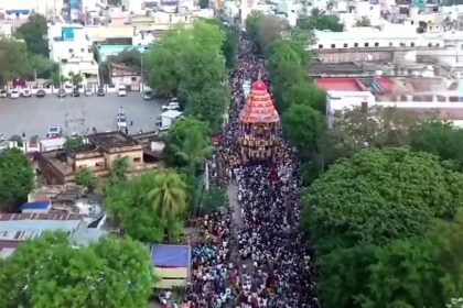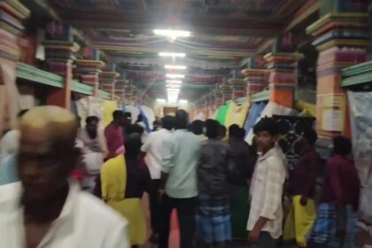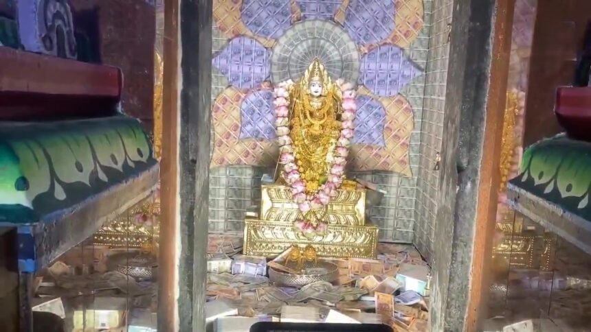 Coimbatore's Ambigai Muthumariamman Temple glows with currency notes and gold jewels for Puthandu festival. Devotees decorate the Mother Goddess seeking family prosperity. Traders offer cash garlands worth lakhs to Amman.…